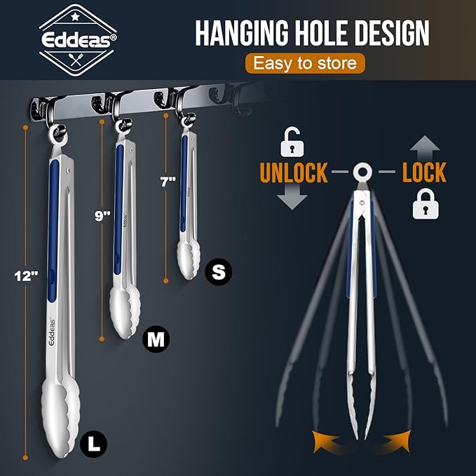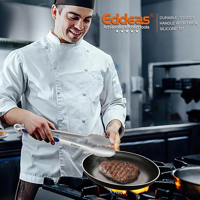 About This FOOD-GRADE STAINLESS STEEL COOKING TONGS - Eddeas kitchen tongs for cooking are made of 1mm thick food-grade stainless... Read more