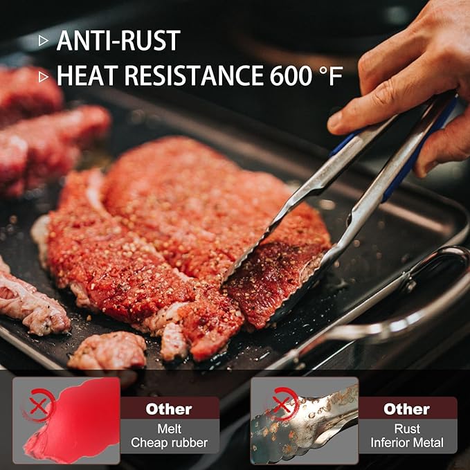 Tongs For Cooking - Heat Resistant 600 Degrees Stainless Steel Kitchen Tong, Heavy Duty Metal Locking Tongs - For Food,Salad, grilling, BBQ 7",9" & 12 inch, set of 3 Dishwasher Safe Blue