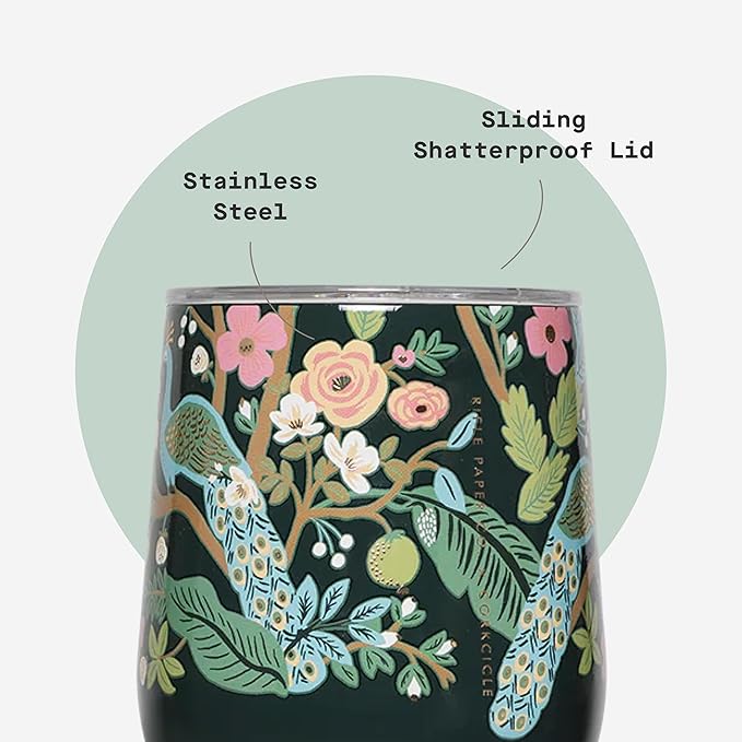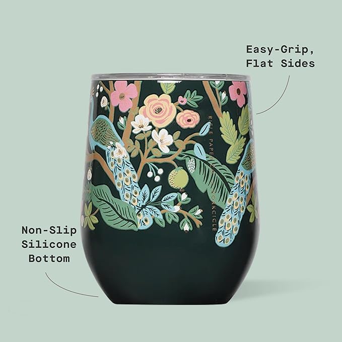 Corkcicle Stemless Insulated Wine Glass Tumbler - Keeps Beverages Cold 6 Hrs Hot 3 Hrs - Stainless Steel - Easy-Grip - Gift for Mom - Great for Mother's Day or Christmas - 12 oz - Peacock Blue