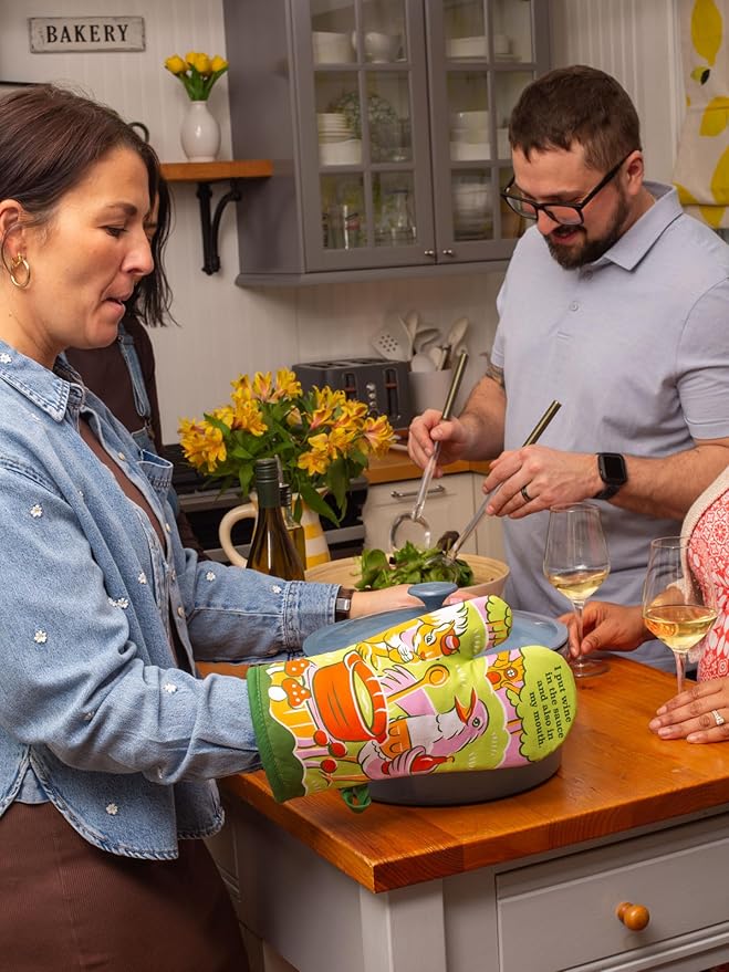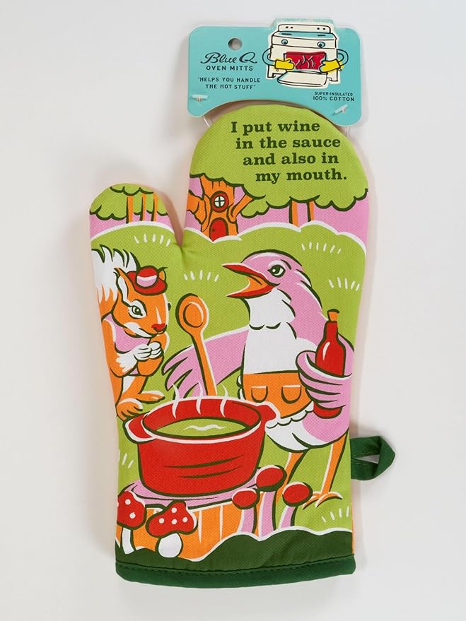 Blue Q I Put Wine in The Sauce Funny Oven Mitts - Cute Oven Mitts, Home Kitchen Gifts, Cooking Accessories, Super-Insulated Quilting, Comfy Natural-Fitting Shape, 100% Cotton, Size 12.5" L x 7.5" W