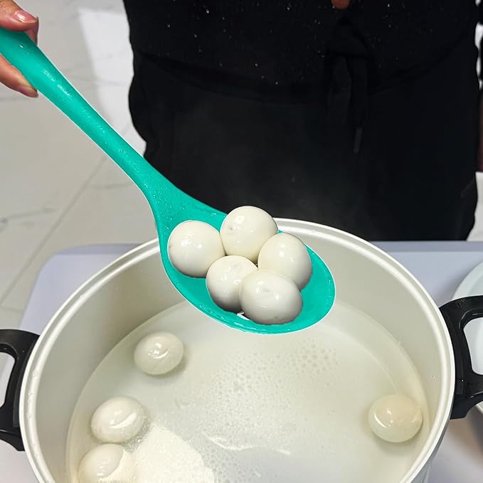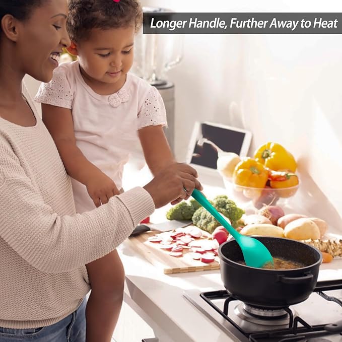 Silicone Spoons for Cooking - Extra Large Kitchen Spoons for Mixing, Serving, & Stirring - 600°F Heat-Resistant Non Stick Utensils Ladle & Skimmer- Dishwasher Safe, Teal
