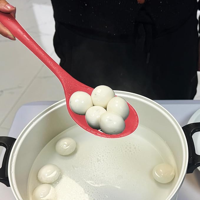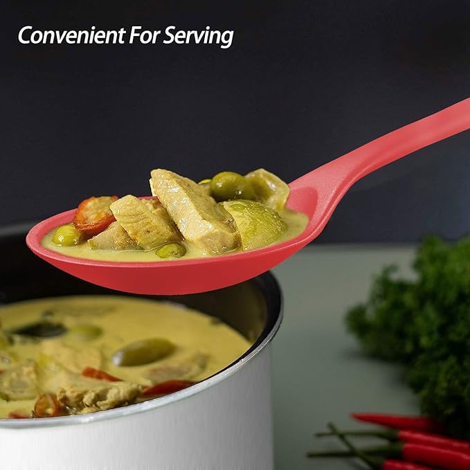 Silicone Spoons for Cooking - Extra Large Kitchen Spoons for Mixing, Serving, & Stirring - 600°F Heat-Resistant Non Stick Utensils Ladle & Skimmer- Dishwasher Safe, Red