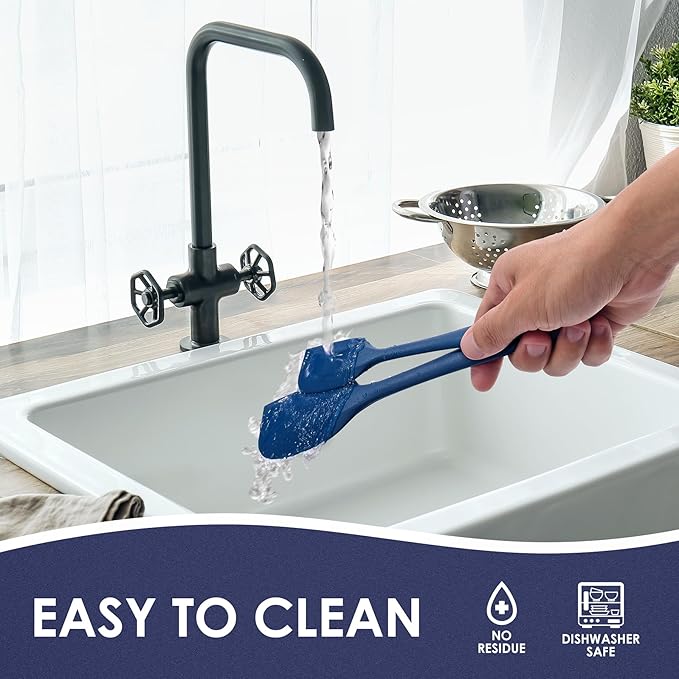 Heat Resistant 600℉ Silicone Spatula, Turner Mixing Spatulas set BPA Free Dishwasher Safe for Nonstick Cookware, Classic Blue