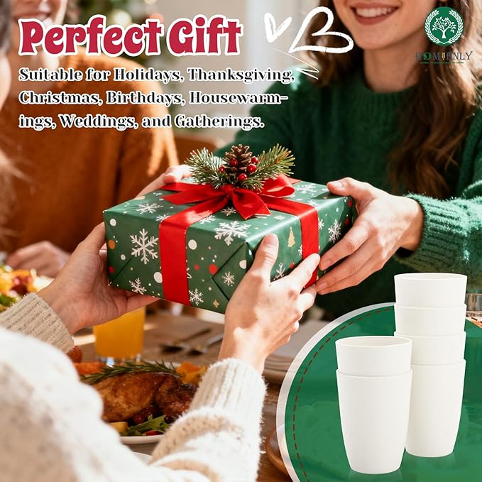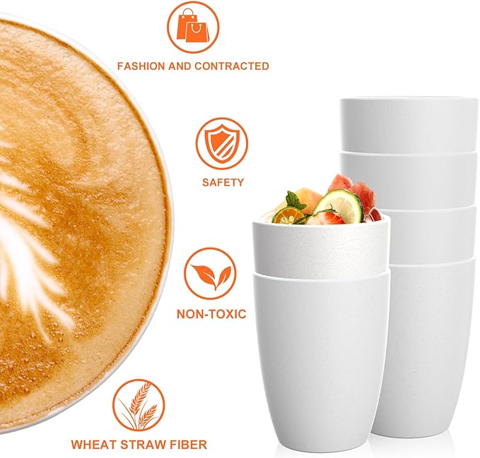 Homienly Wheat Straw Drinking Glasses, 12 OZ Alternative to Plastic Cups Set of 6, Reusable Drinking Cups for Kitchen, Outdoor, Unbreakable Lightweight Water Tumblers, Dishwasher Safe Cup Set(White)