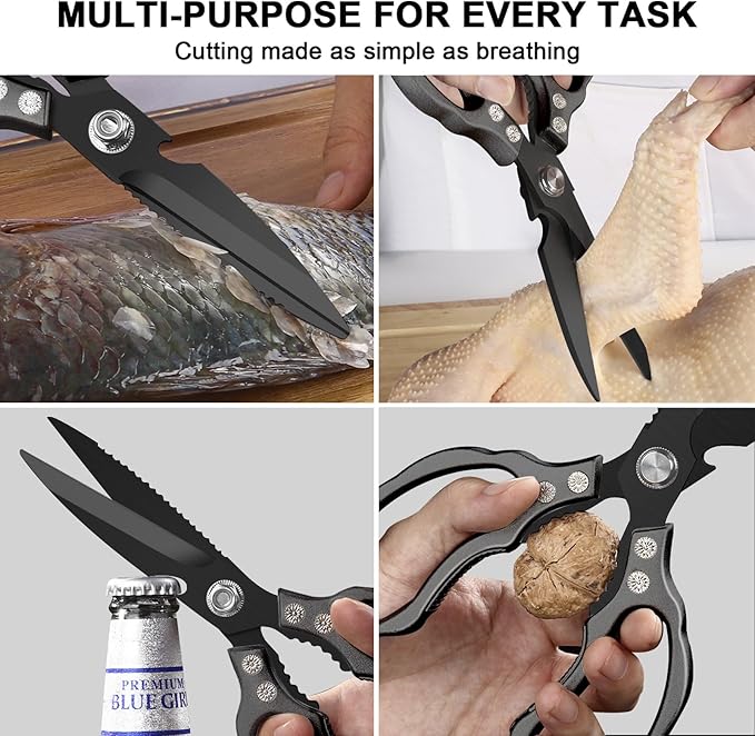 About This 【All Purpose Scissors】The multi-functional kitchen shears can also be used as nut crackers, bottle openers and scale scrapers,Heavy... Read more