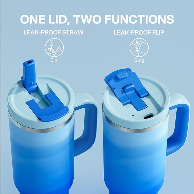 40 oz Tumbler with Handle and Straw: Stainless Steel Insulated Tumbler Keeps Cold for 24 Hours, Leakproof Travel Cup Fits in Cup Holder and BPA-Free, Sea