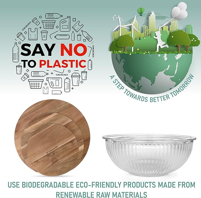 Set of 3 Stackable Space-Saving Nesting Glass Salad Bowls with Acacia Lids for Foodprep, Storage, Baking, Mixing & Cooking - Microwave Safe Durable Inert Borosilicate Glass