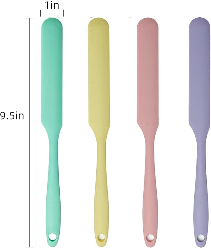 4 Pcs Silicone Jar Spatula Set - Long Handle Sourdough Scraper, Skinny Spatula for Jars, Bottles, and Containers, Non-Stick Heat Resistant Cake Cream Spatulas