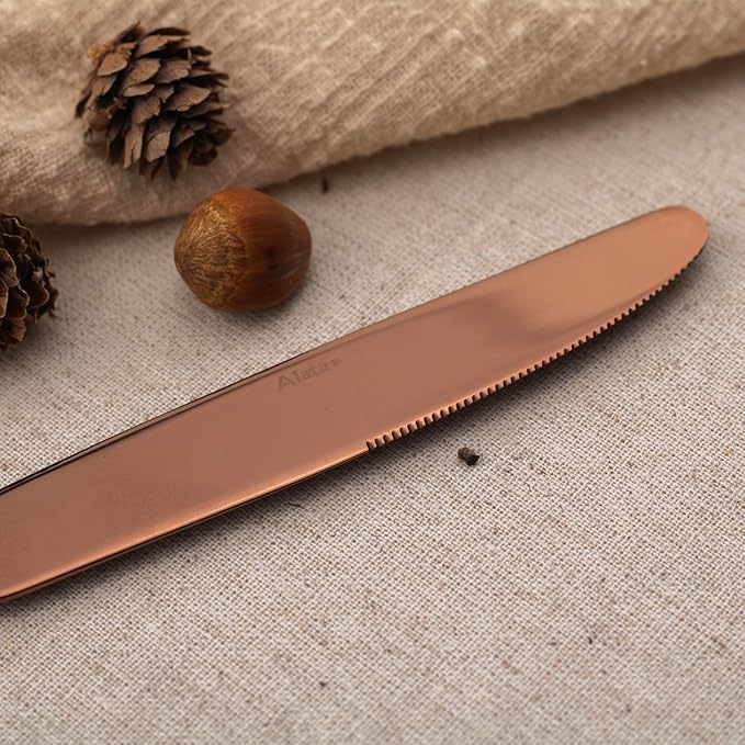 Alata Kate Rose Gold Mirror 40-Piece Silverware Set,Service for 8,Stainless Steel Flatware Set,Mirror Cutlery Set,Dishwasher Safe