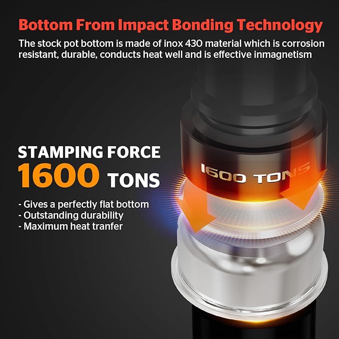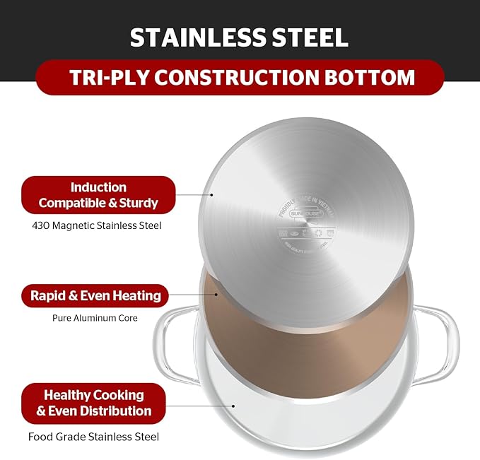 SUNHOUSE 13-Quart Stainless Steel Stockpot w/Tempered Glass Lid - Heavy-Duty, Food-Grade Cookware for Simmering, Boiling, and Induction Cooking - Exceptional Heat Distribution
