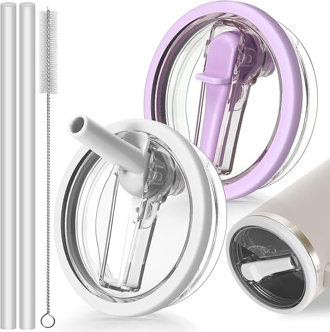 30oz Leak Proof Lid for Stanley Quencher H2.0 Tumbler, Flip Straw Lid Replacement 30 oz Tumbler No Spill Cover Top for Stanley Protour Stanley Cup Accessories, 2 Pack (White, Purple)