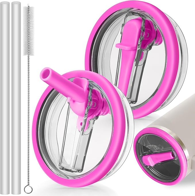 30oz Leak Proof Lid for Stanley Quencher H2.0 Protour Tumbler, 2 Pack Flip Straw Lid Replacement 30 oz Spill Proof Lids Cover Top for Stanley Cup Accessories (RoseRed, RoseRed)