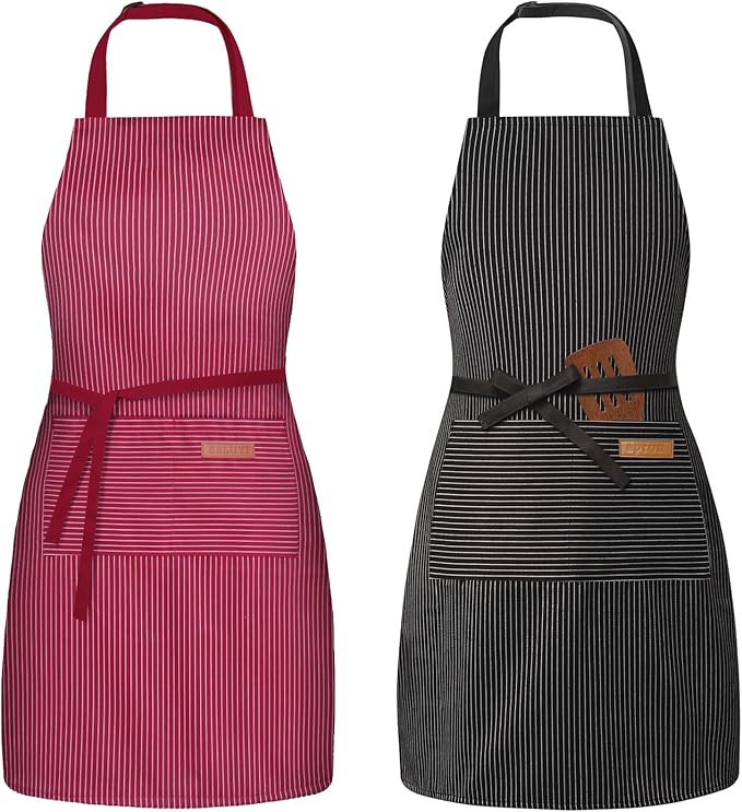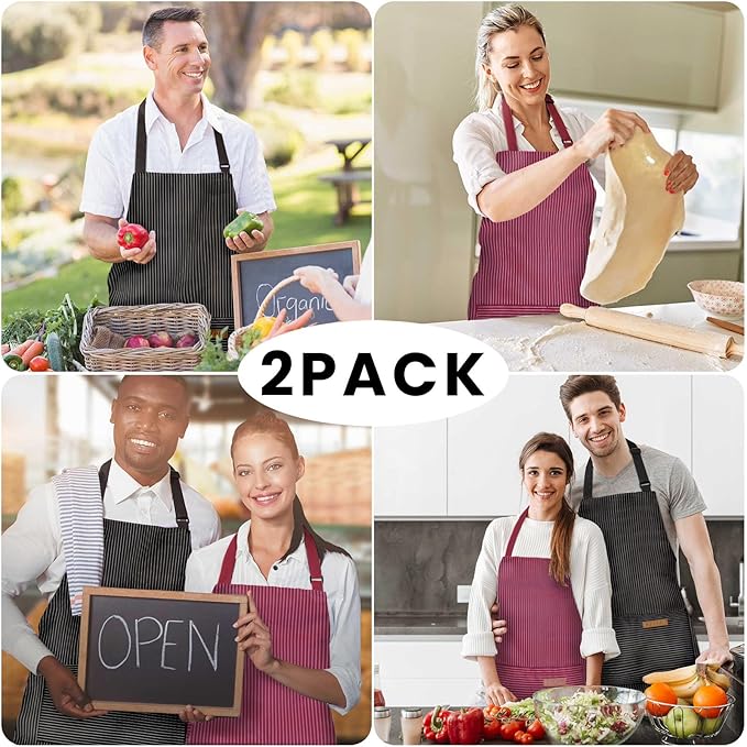 2 Pack Adjustable Bib Apron with 2 Pockets Chef Cooking Kitchen Restaurant Aprons for Women Men