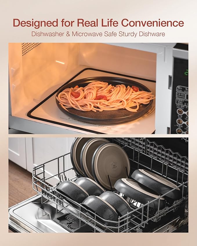 Famiware Milkyway Plates and Bowls Sets, 24 Pieces Dinnerware Sets, Reactive Glaze Dish Set, Stoneware Dishes Set for 8, Matte Dark Charcoal