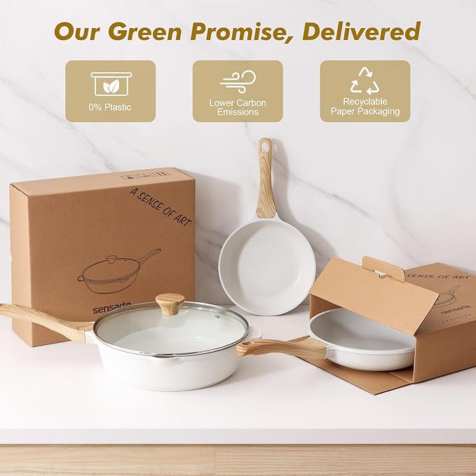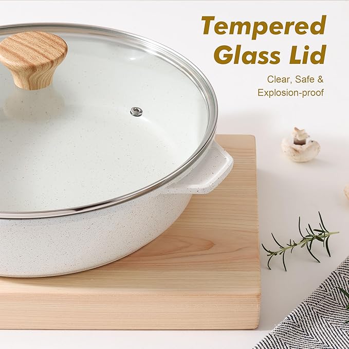 SENSARTE Nonstick Frying Pan Skillet with Lid 3.5/4.5/5QT, Ceramic Saute Pan,Deep Fring Pan Non-toxic Cooking Pot, Stay-cool Handle, Induction Compatible, PFAS Free