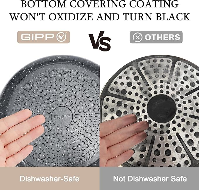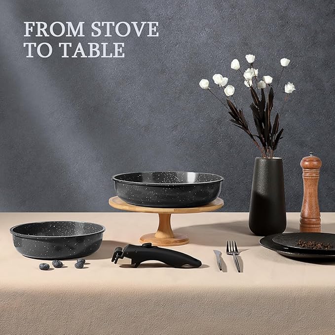 GiPP Ceramic Pots and Pans Set Non Stick, Nonstick Detachable Handle Cookware Sets, Non Toxic Induction Kitchen Pot and Pan with Removable Handle, Healthy RV Cookware, Dishwasher &Oven Safe, 5 Piece