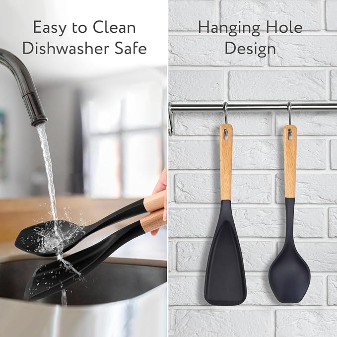 Spatula Spoon 2-Pack, Silicone Cooking Spoon for Nonstick Cookwares, Multifunction Kitchen Utensils for Cooking, Serving, Mixing, Scoop, Scrape and More