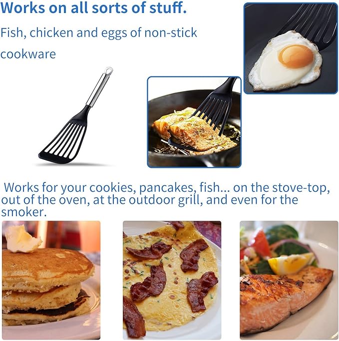 KSENDALO Fish Spatula for Nonstick Pans 2-Pack - Thin Turner for Eggs & Fish | LFGB Nylon, 10,000+ Reviews | Dishwasher Safe