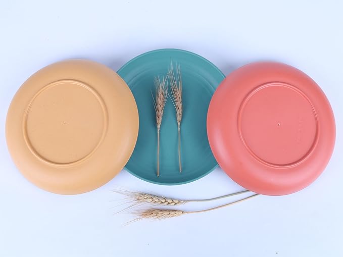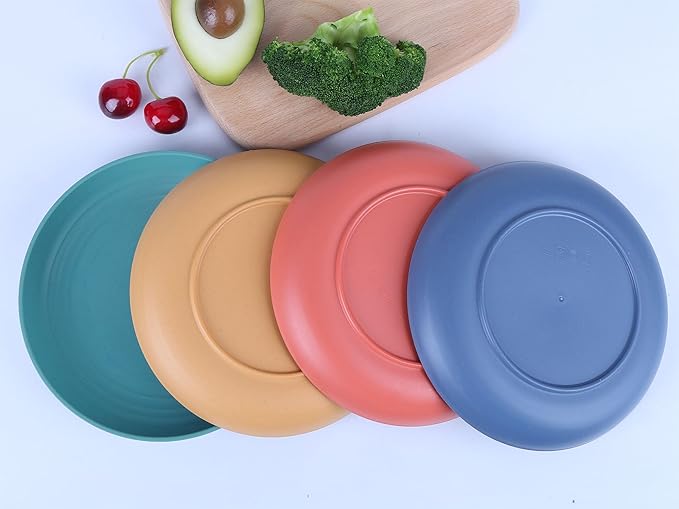 LuckyZone 8.8 Inches Unbreakable Wheat Straw Plates - Reusable Plate Dinner Set - Dishwasher & Microwave Safe - Healthy, BPA Free & Eco-Friendly (8.8 Inches/4 Color_H)