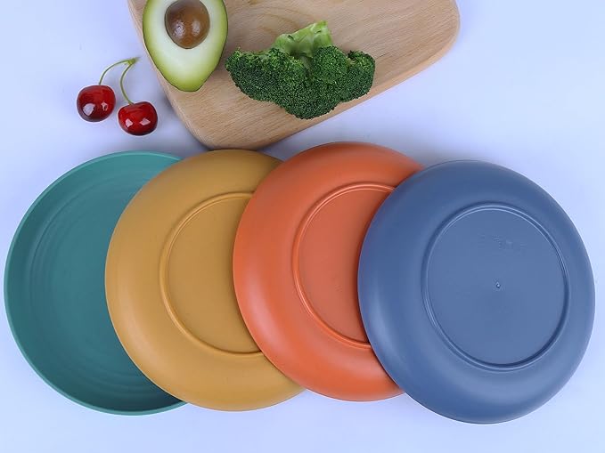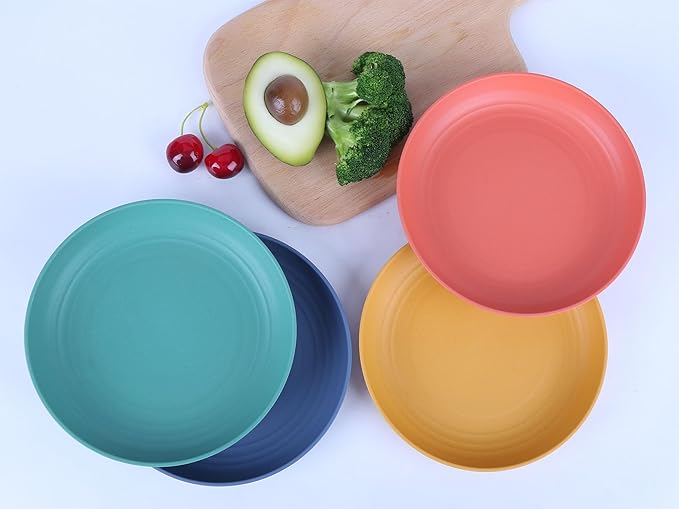 LuckyZone 7.8 Inches Unbreakable Wheat Straw Plates - Reusable Plate Dinner Set - Dishwasher & Microwave Safe - Healthy, BPA Free & Eco-Friendly (7.8 Inches/4 Color_H)
