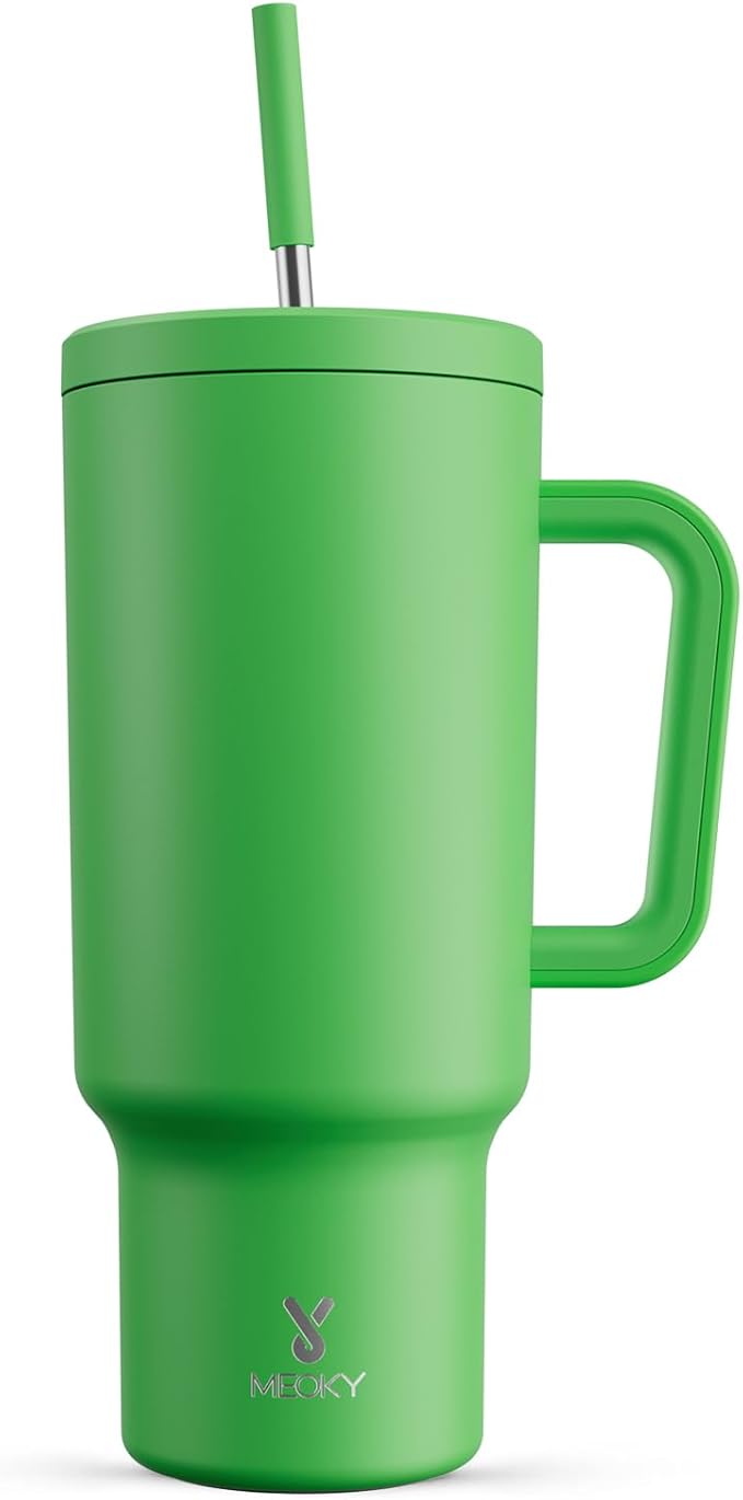 About This Hello, Cold Drinks: With double-wall vacuum insulation, Meoky 40 oz tumbler with handle and straw beats the heat... Read more