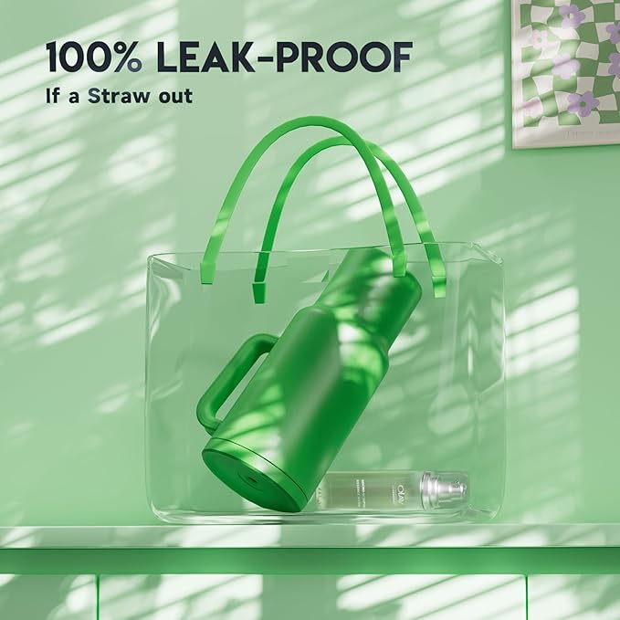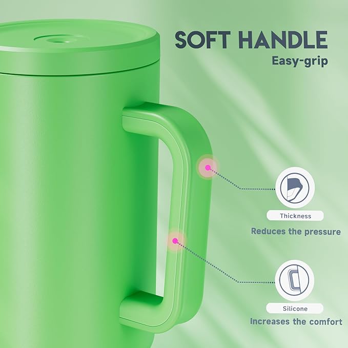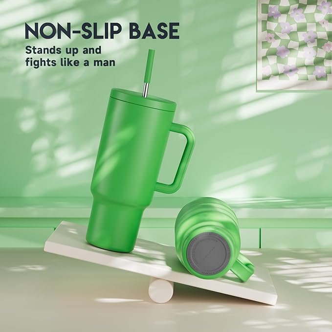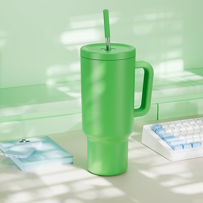 Meoky 40 oz Tumbler with Handle and Straw: Stainless Steel Insulated Tumbler with Lid and Straw - 100% Leak Proof Tumbler for Car Cup Holders - Travelers Commuters Workers, Green