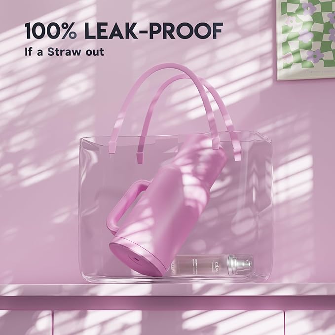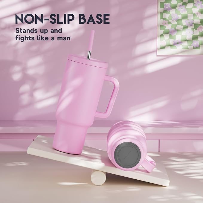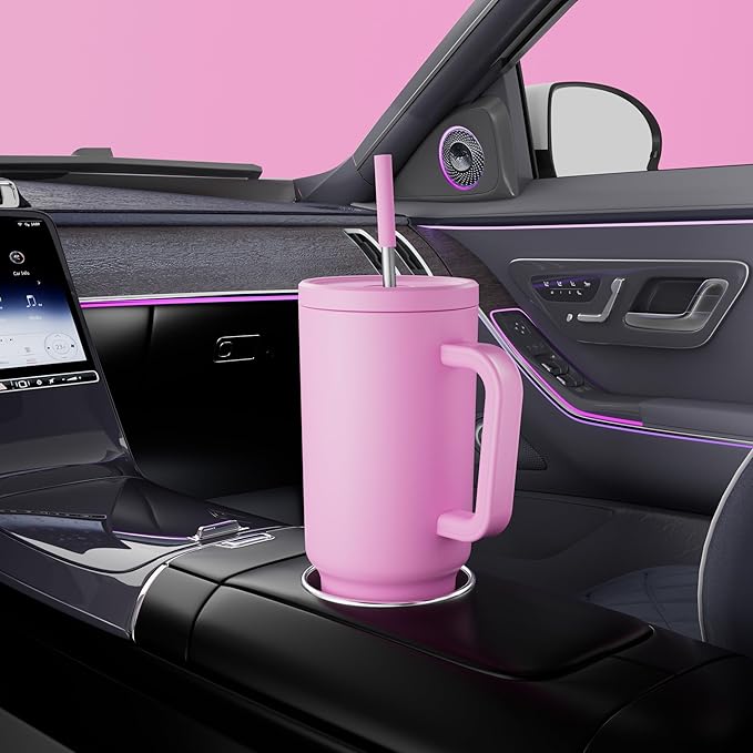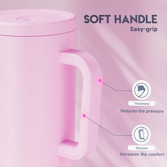 Meoky 40 oz Tumbler with Handle and Straw: Stainless Steel Insulated Tumbler with Lid and Straw - 100% Leak Proof Tumbler for Car Cup Holders - Travelers Commuters Workers, Pink