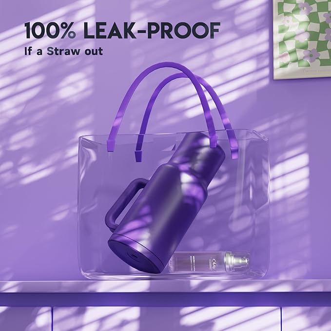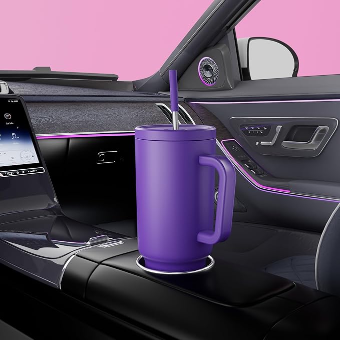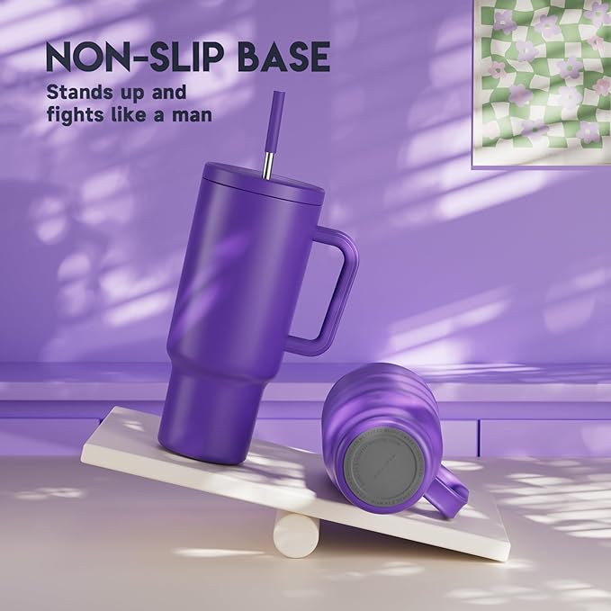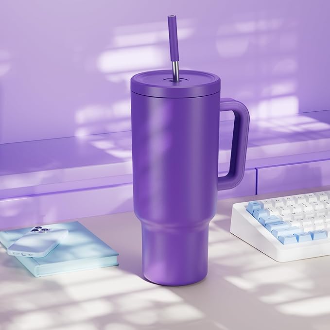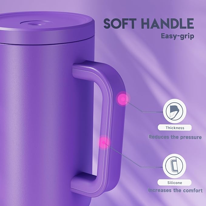 Meoky 40 oz Tumbler with Handle and Straw: Stainless Steel Insulated Tumbler with Lid and Straw - 100% Leak Proof Tumbler for Car Cup Holders - Travelers Commuters Workers, Purple