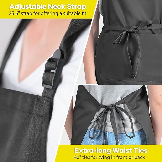• UTILITY DESIGN: All plain apron is perfect for both men and women. It is suitable for use by waiters, waitresses, servers, chefs, baristas when working at restaurants, bars, shops, cafes or when cooking, baking, grafting, painting