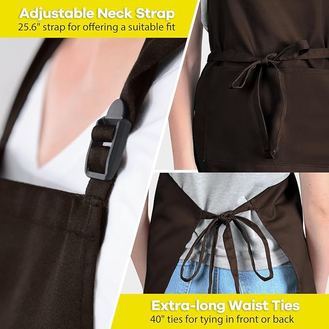 • UTILITY DESIGN: All plain apron is perfect for both men and women. It is suitable for use by waiters, waitresses, servers, chefs, baristas when working at restaurants, bars, shops, cafes or when cooking, baking, grafting, painting