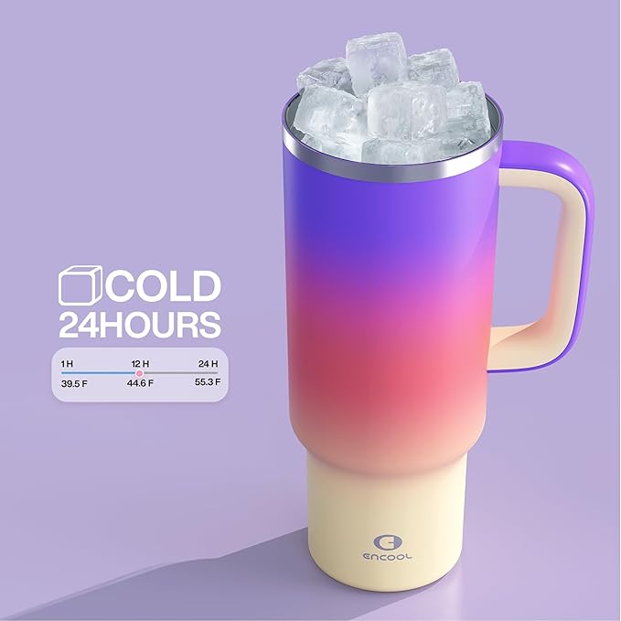 40 oz Tumbler with Handle and Straw: Stainless Steel Insulated Tumbler Keeps Cold for 24 Hours, Leakproof Travel Cup Fits in Cup Holder and BPA-Free, Peach Dream