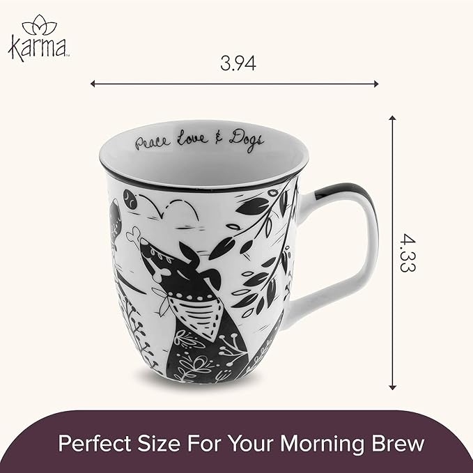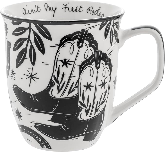Karma Gifts 14 oz Black and White Boho Mug Western - Cute Coffee and Tea Mug - Ceramic Coffee Mugs for Women and Men