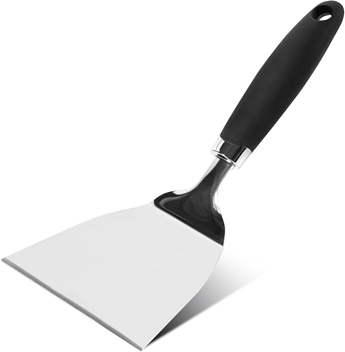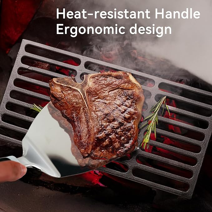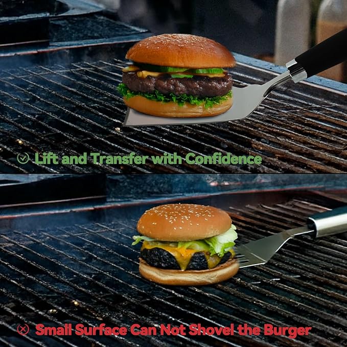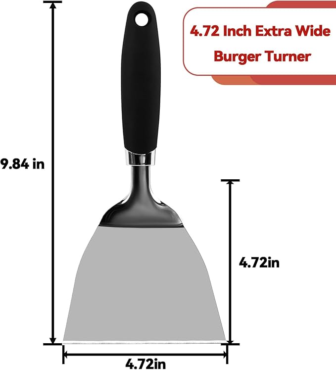 Professional Wide Turner 9.5 Inch Stainless Steel Spatula for Cast Iron, Griddle and Grill Cooking, Barbecue Hamburger Metal Kitchen Utensil, Dishwasher Safe