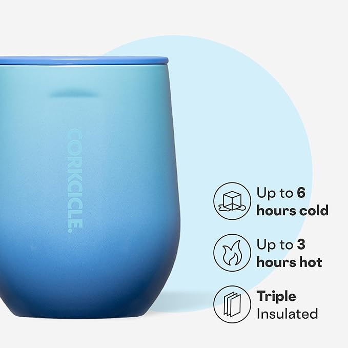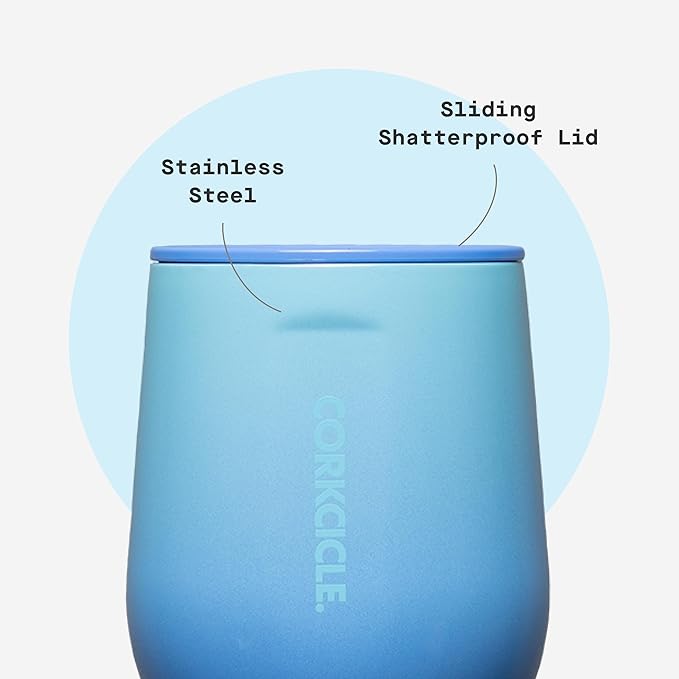 Corkcicle Classic Stemless Wine Tumbler - Keeps Drinks Cold for 6 Hours - Triple-Insulated Stainless Steel - Non-Slip Bottom - Summer Drinkware Gift - Keeps Drinks Ice Cold - 12 oz - Boom Box Blue