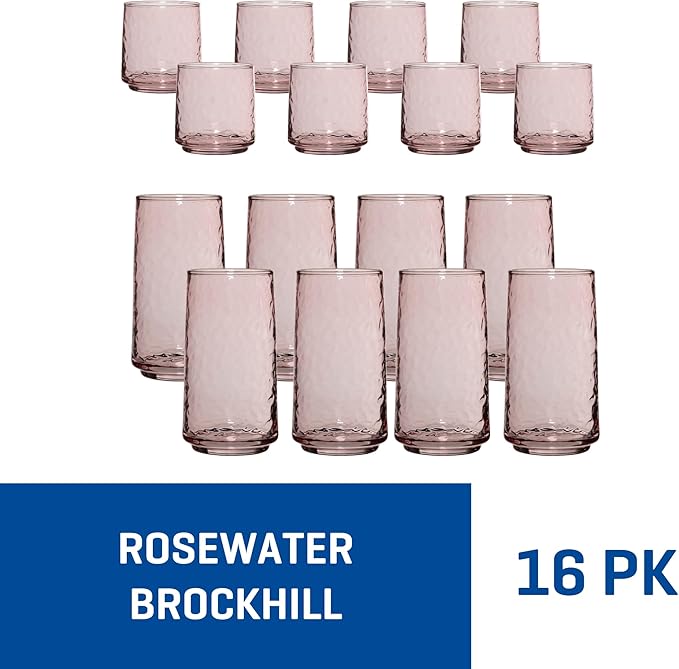 Anchor Hocking Rosewater Brockhill Drinking Glasses (16-Pieces, 12-ounce and 18-ounce, dishwasher safe)