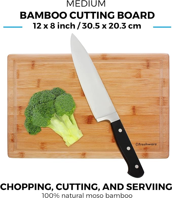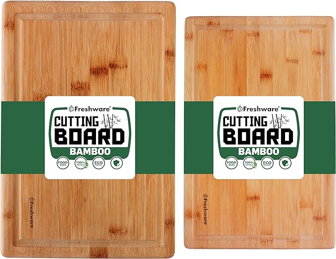 Freshware Freshware Bamboo Cutting Boards for Kitchen with Juice Groove [Set of 2] Wood Cutting Board for Chopping Meat, Vegetables, Fruits, Cheese, Knife Friendly Serving Tray with Handles