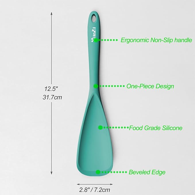 Silicone Spatula Spoon, Great for Both Cooking and Serving Durable BPA-Free Matte Black Silicone, Seamless Design, Safe for Nonstick Cooking Surfaces, 2-Pcs, Teal