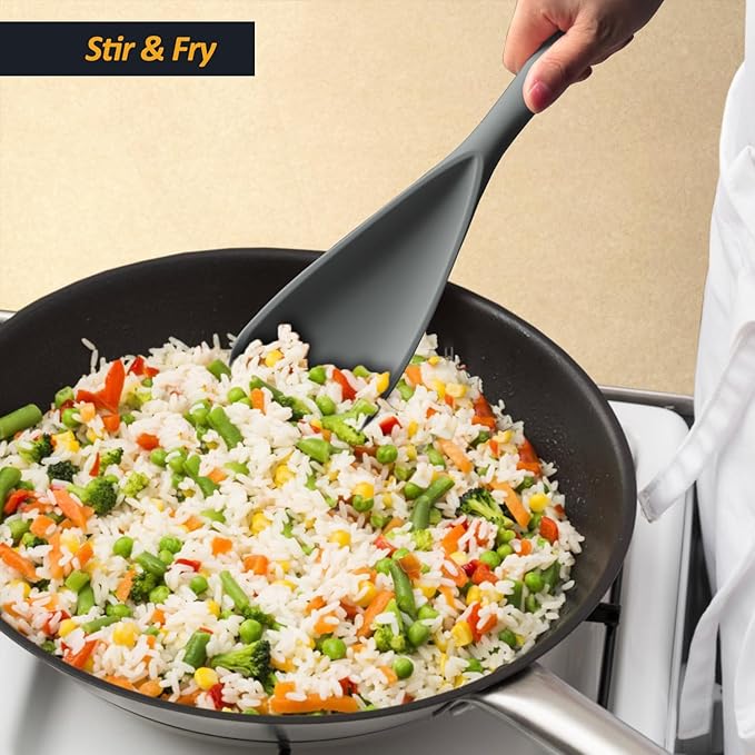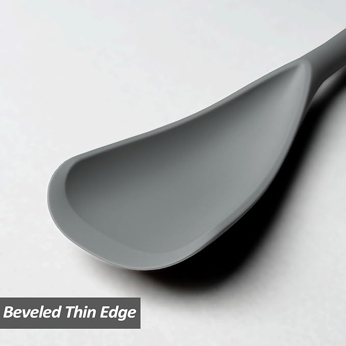 Silicone Spatula Spoon, Great for Both Cooking and Serving Durable BPA-Free Matte Black Silicone, Seamless Design, Safe for Nonstick Cooking Surfaces, 2-Pcs, Gray