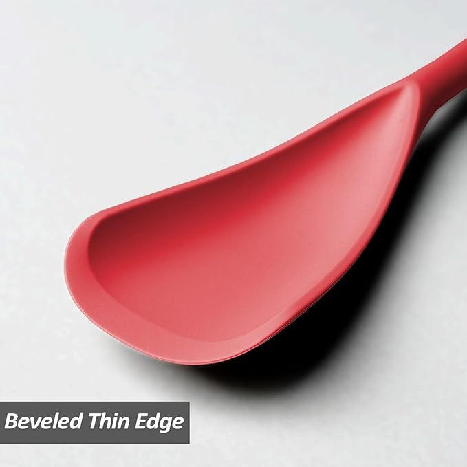 Silicone Spatula Spoon, Great for Both Cooking and Serving Durable BPA-Free Matte Black Silicone, Seamless Design, Safe for Nonstick Cooking Surfaces, 2-Pcs, Red