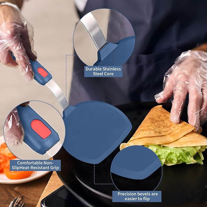 Silicone Spatula Turner Set of 3, Heat Resistant Large Wide Spatula for Pancake, Silicone Fish Spatulas Flipper for Cooking & Non-stick Cookware, BPA Free Rubber Cooking Untensil Set