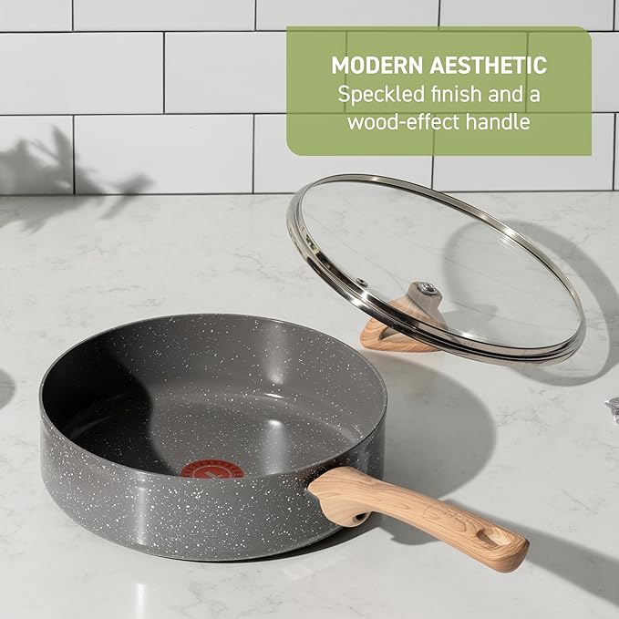T-fal Revive Ceramic Cookware Sets, Pots and Pans Set Nonstick, (12 pieces), Ceramic Non stick Coated, Frying Pan, Oven Safe Up To 350ยฐF, Grey Granite