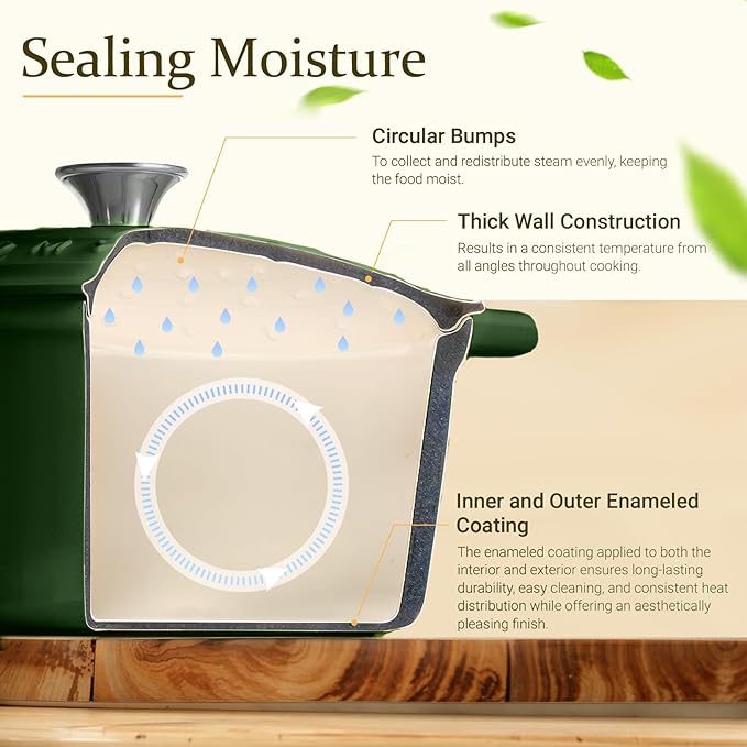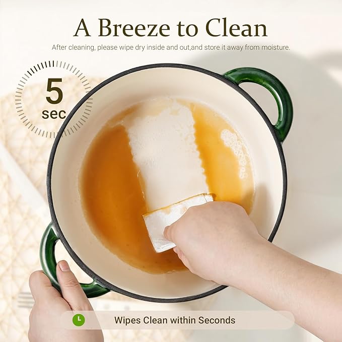 Overmont Enameled Cast Iron Dutch Oven - 5.5QT Pot with Lid Cookbook & Cotton Potholders - Heavy-Duty Cookware for Braising, Stews, Roasting, Bread Baking Glossy Green