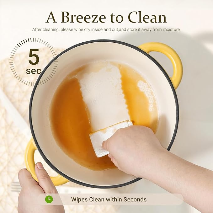 Overmont Enameled Cast Iron Dutch Oven - 5.5QT Pot with Lid Cookbook & Cotton Potholders - Heavy-Duty Cookware for Braising, Stews, Roasting, Bread Baking Goose Yellow