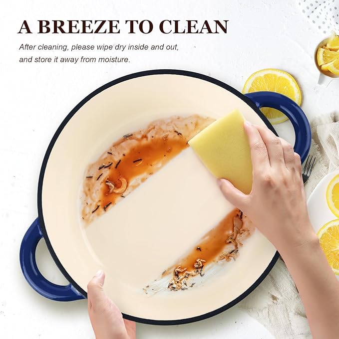 Overmont Enameled Cast Iron Dutch Oven - 5.5QT Pot with Lid Cookbook & Cotton Potholders - Heavy-Duty Cookware for Braising, Stews, Roasting, Bread Baking Indigo Blue
