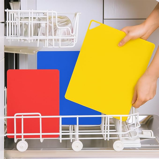 WK Flexible Plastic Cutting Boards for Kitchen Set of 3, Non slip Cutting Mats, Colorful Thin Cutting Sheets for Meat, BPA Free, Dishwasher Safe