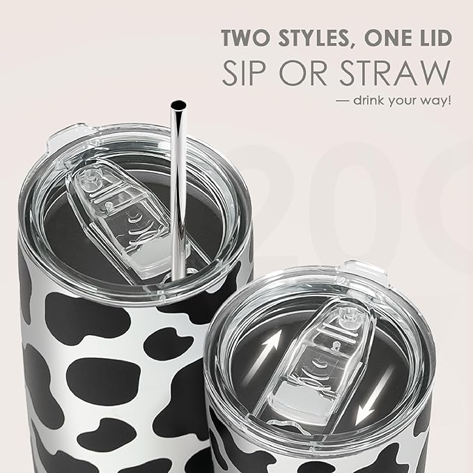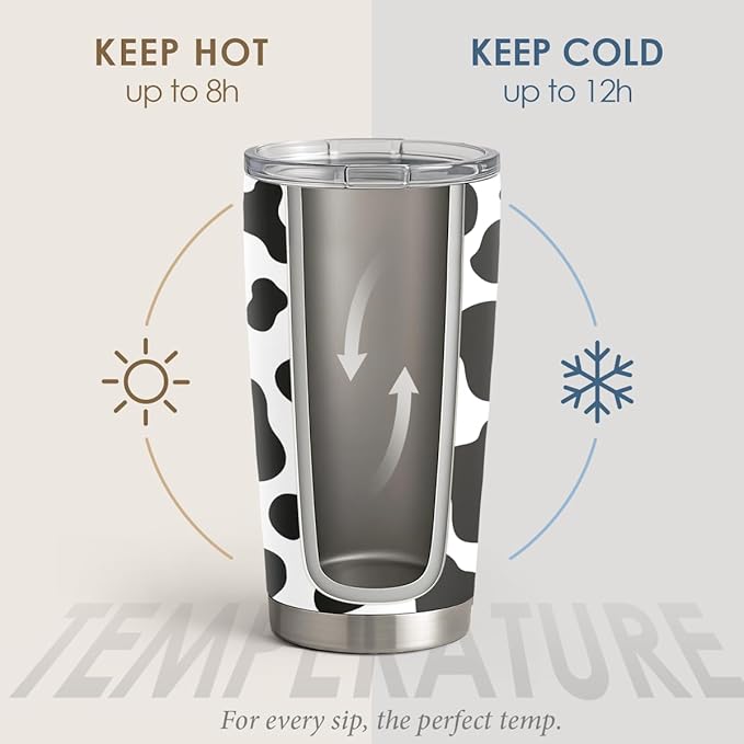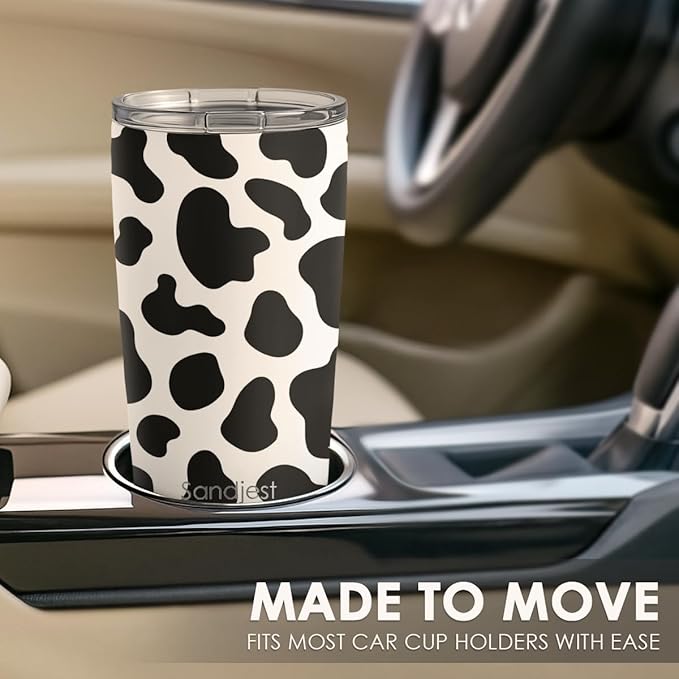 SANDJEST Cow Print Tumbler 20oz Stainless Steel Insulated, Travel Coffee Cup, Gifts for Cow Lovers Women Girls, Birthday Christmas