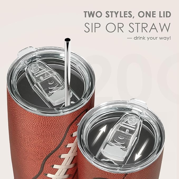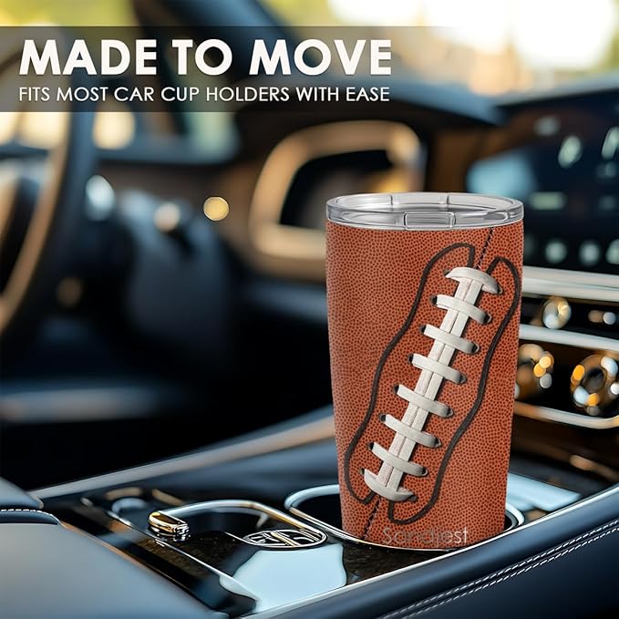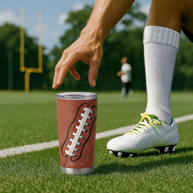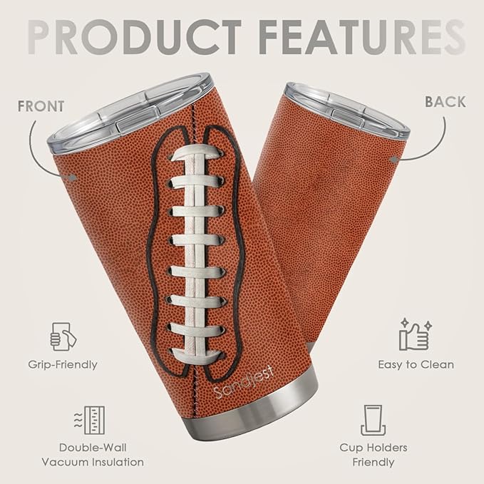 SANDJEST Football Tumbler 20oz Stainless Steel Insulated, Travel Coffee Cup, Sport Tumblers Gifts for Football Lovers, Men Women, Coach, Birthday, Christmas