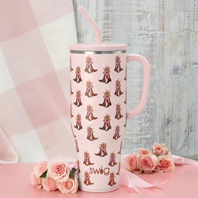 Swiglife 40oz Mega Mug, 40oz Tumbler with Handle and Straw, Extra Large Insulated Tumblers, Cup Holder Friendly Travel Mug (Cowgirl Coquette)