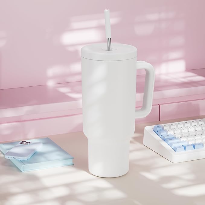 About This Hello, Cold Drinks: With double-wall vacuum insulation, Meoky 40 oz tumbler with handle and straw beats the heat... Read more