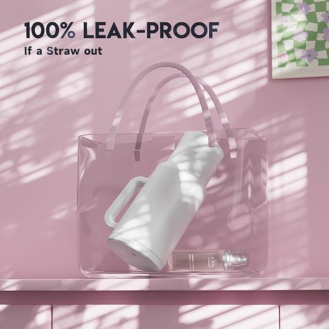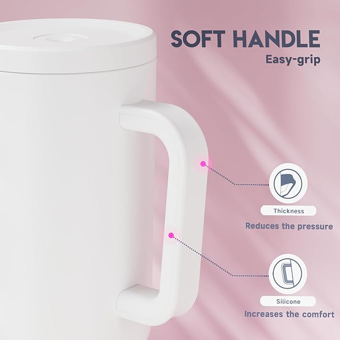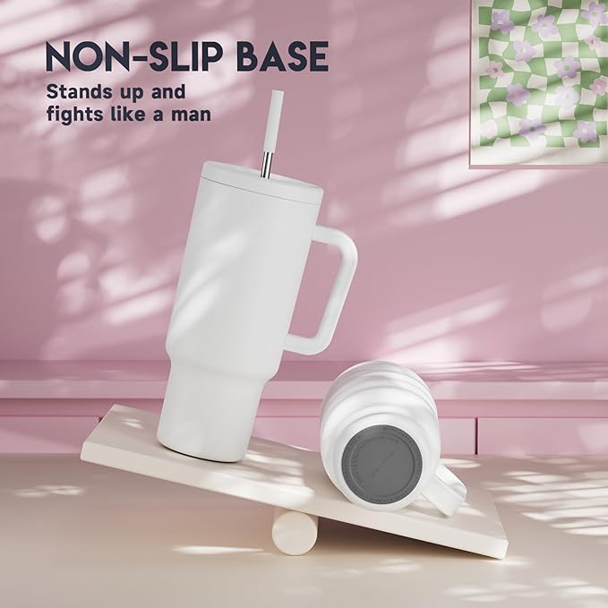 Meoky 40 oz Tumbler with Handle and Straw: Stainless Steel Insulated Tumbler with Lid and Straw - 100% Leak Proof Tumbler for Car Cup Holders - Travelers Commuters Workers, White